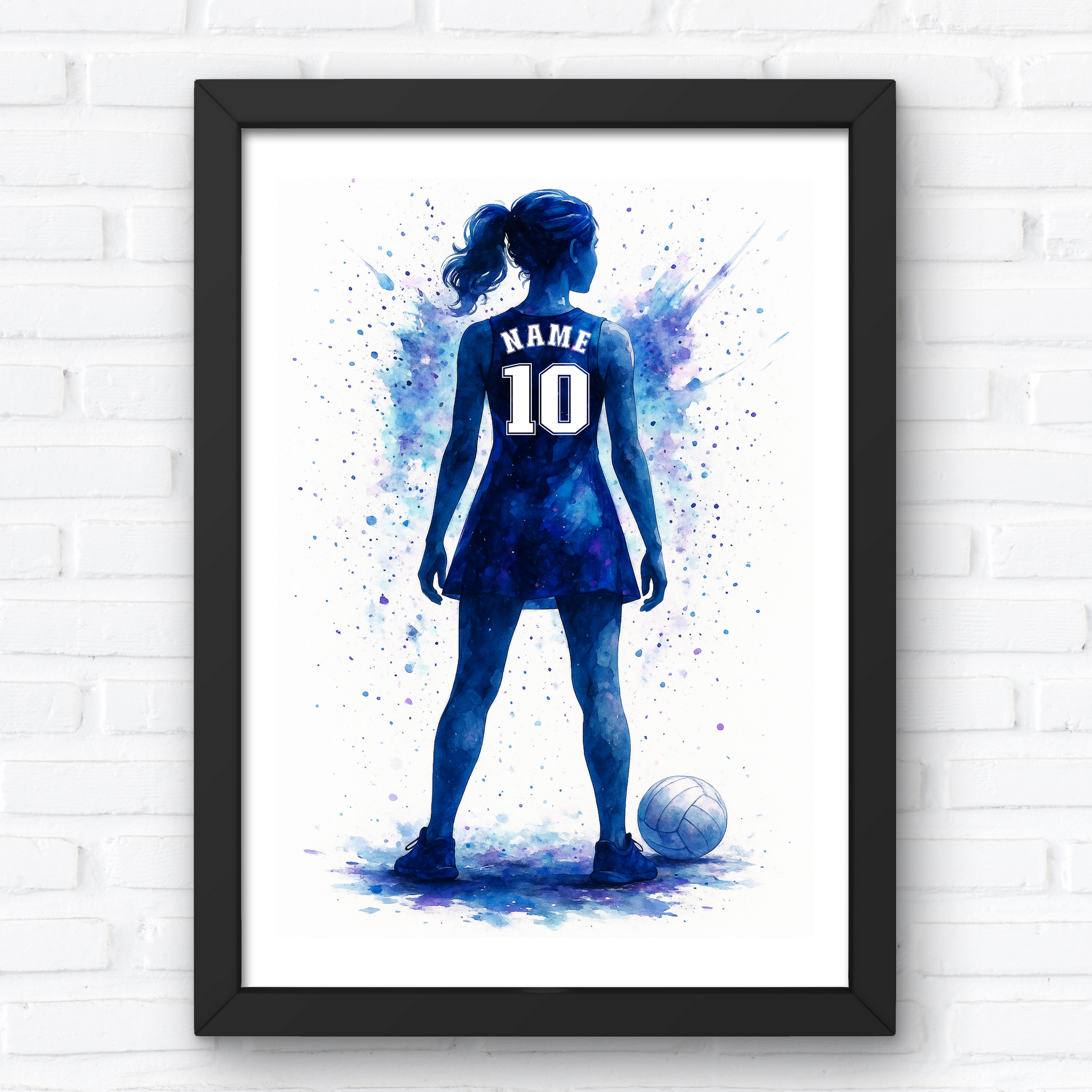 Custom Netballer Art, Boys Personalised Netball Print For Girls