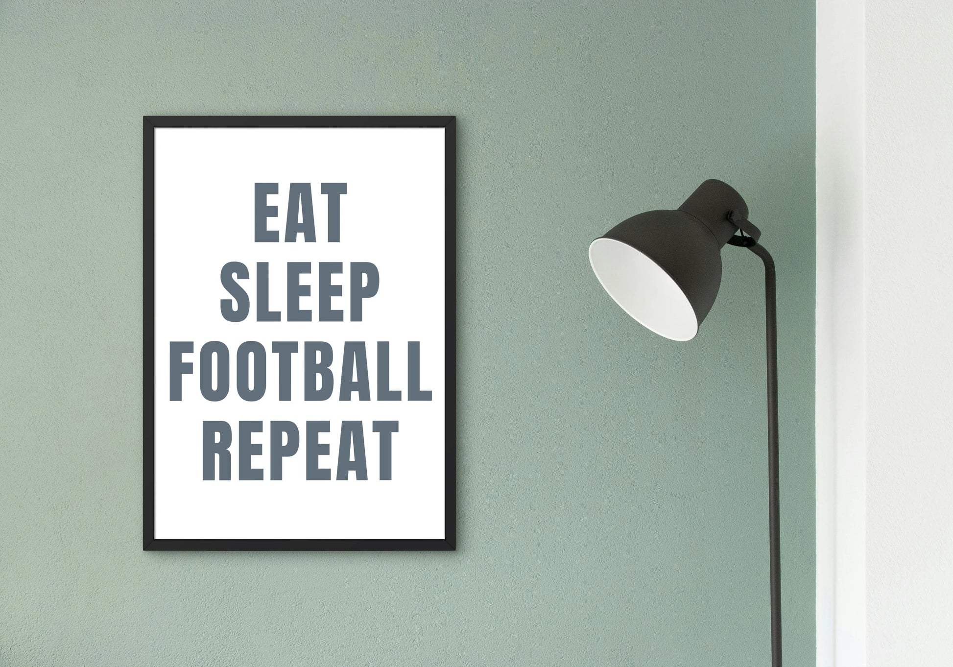 Eat Sleep Football Repeat, Footballer Art, Football Print For Kids Bedroom
